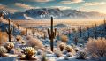 Snow-Covered Cacti Under Tucson's Winter Skyline