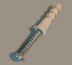 This alternative to a basic anchor is a great way to secure your screw in drywall, when there isn't a wooden wall stud where you need it. The piece looks like a basic plastic anchor, with two pointed ends stretching away to make a 'T' shape. These "wings" are folded in toward each other and inserted through the hole in the wall.
