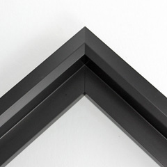 Unique geometric 1 " floater. The face of this molding features an off center peak which gives it a unique contrast in the right lighting. This frame comes in solid mars black with a dull satin finish.