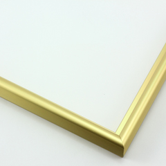 This simple metal picture frame has a smooth, frosted gold finish and curved profile. The outer drop edge has a tiny vertical ridge texture.